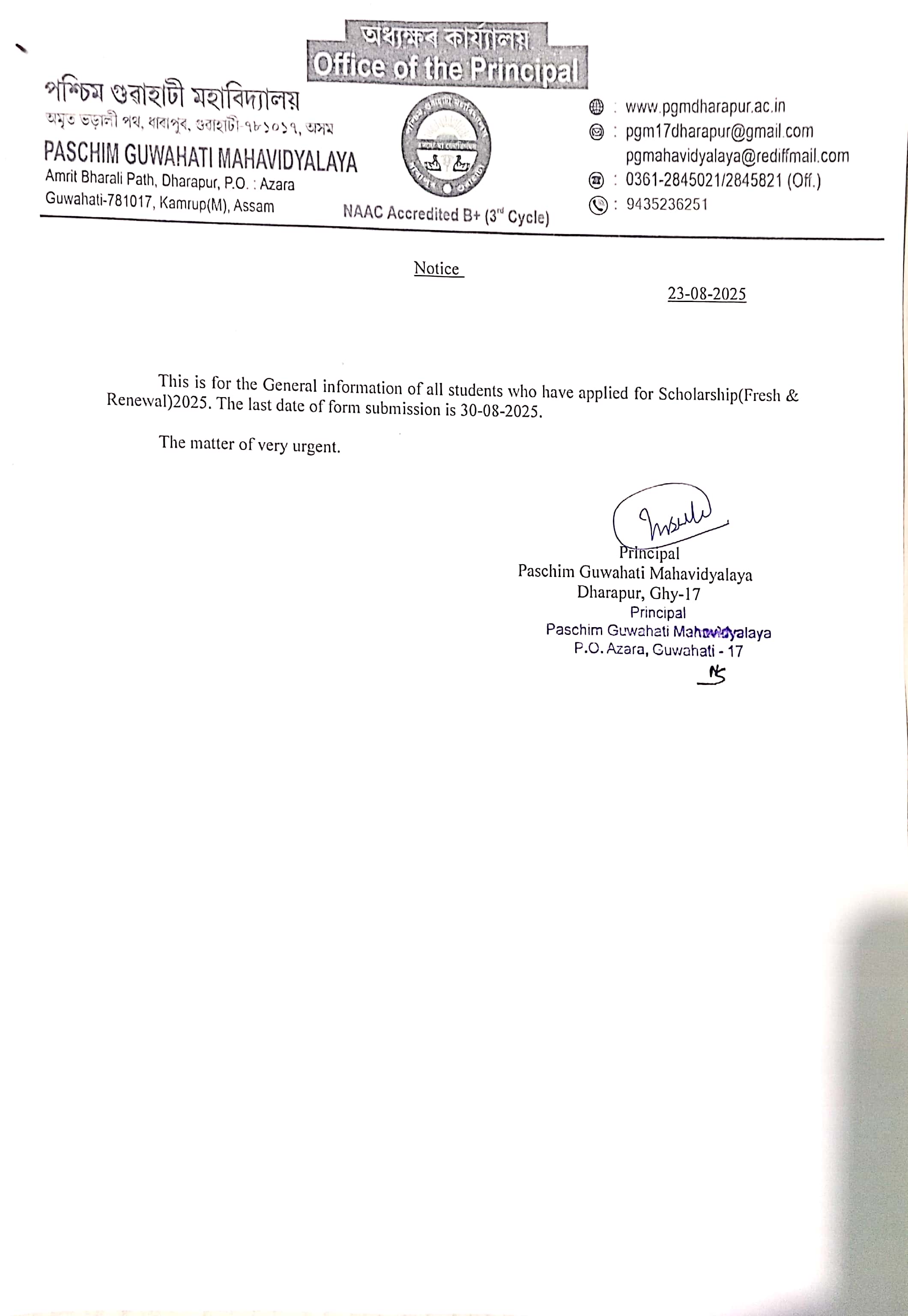 We the entire family of Paschim Guwahati Mahavidyalaya welcome all of you to this premier Higher Educational institute.